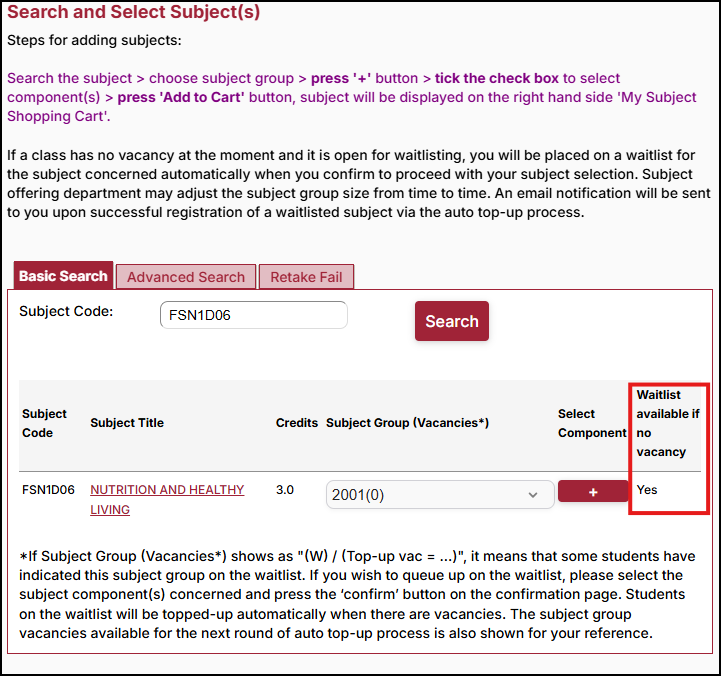 > Information > subject search > Select the ‘Academic Year/Sem’